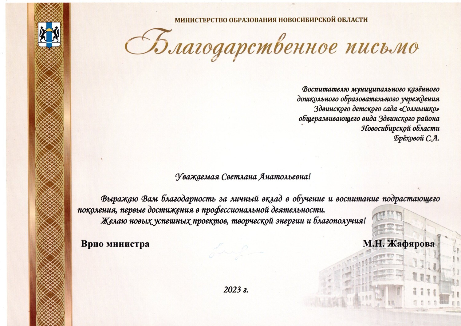 Благодарственное письмо
